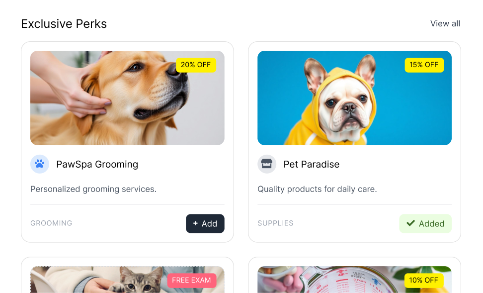 Residents unlock special savings on grooming, daycare, supplies, and more exclusive perks only available at your property.